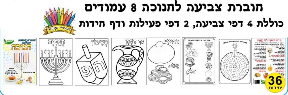 חוברת צביעה לחנוכה – מעשירה את הידע בדרך חווייתית. כוללת 4 דפי צביעה, 2 דפי פעילות ודף חידות.