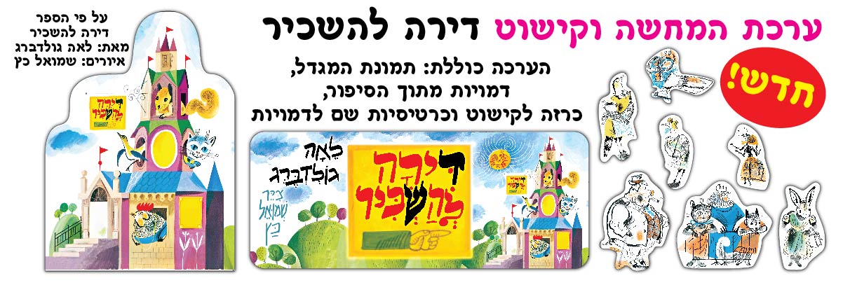 ערכת המחשה "דירה להשכיר" מאת לאה גולדברג. תמונת המגדל + דמויות מתוך הסיפור + כרזה לקישוט + כרטיסיות שם לדמויות.