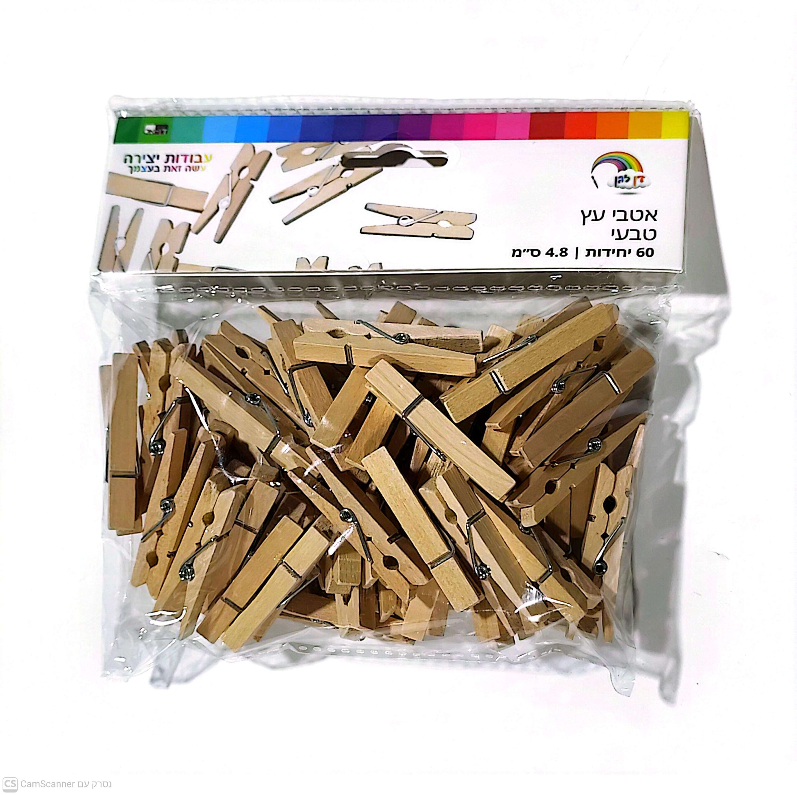 אביזרי עץ קטנים לתליית עבודות או יצירה, מפתחים מוטוריקה עדינה ומשמשים ככלי ארגון בפינת האמנות.