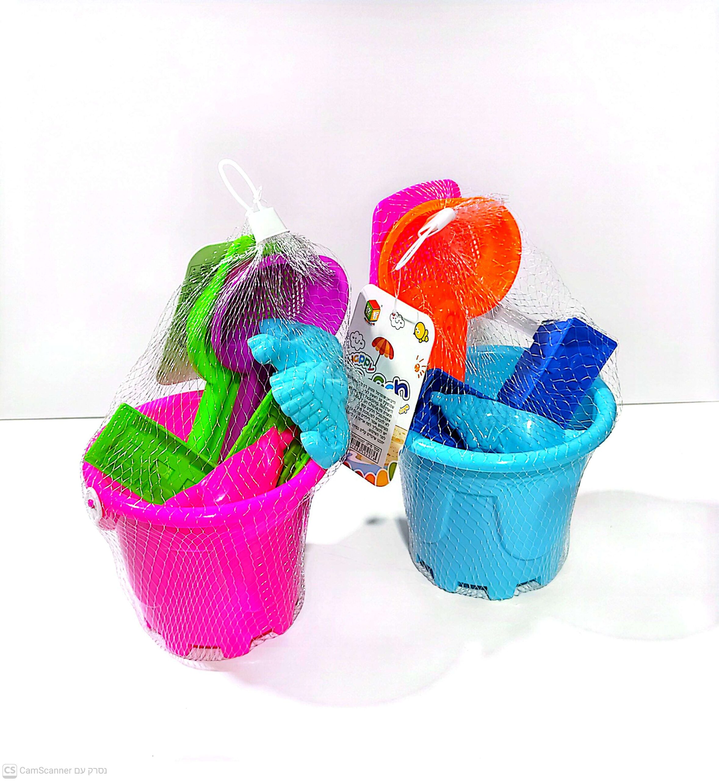 דלי + 5 כלי חול ים ברשת – 21 ס"מ