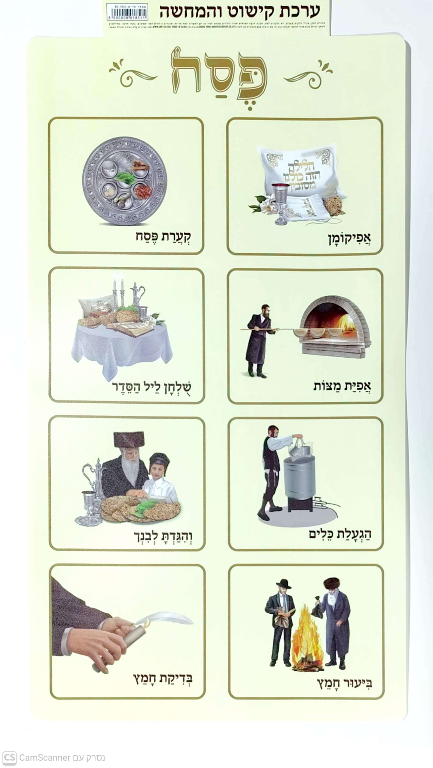 כרזת קישוט צבעונית המציגה את סימני פסח, מתאימה לתלייה בכיתה או בבית.