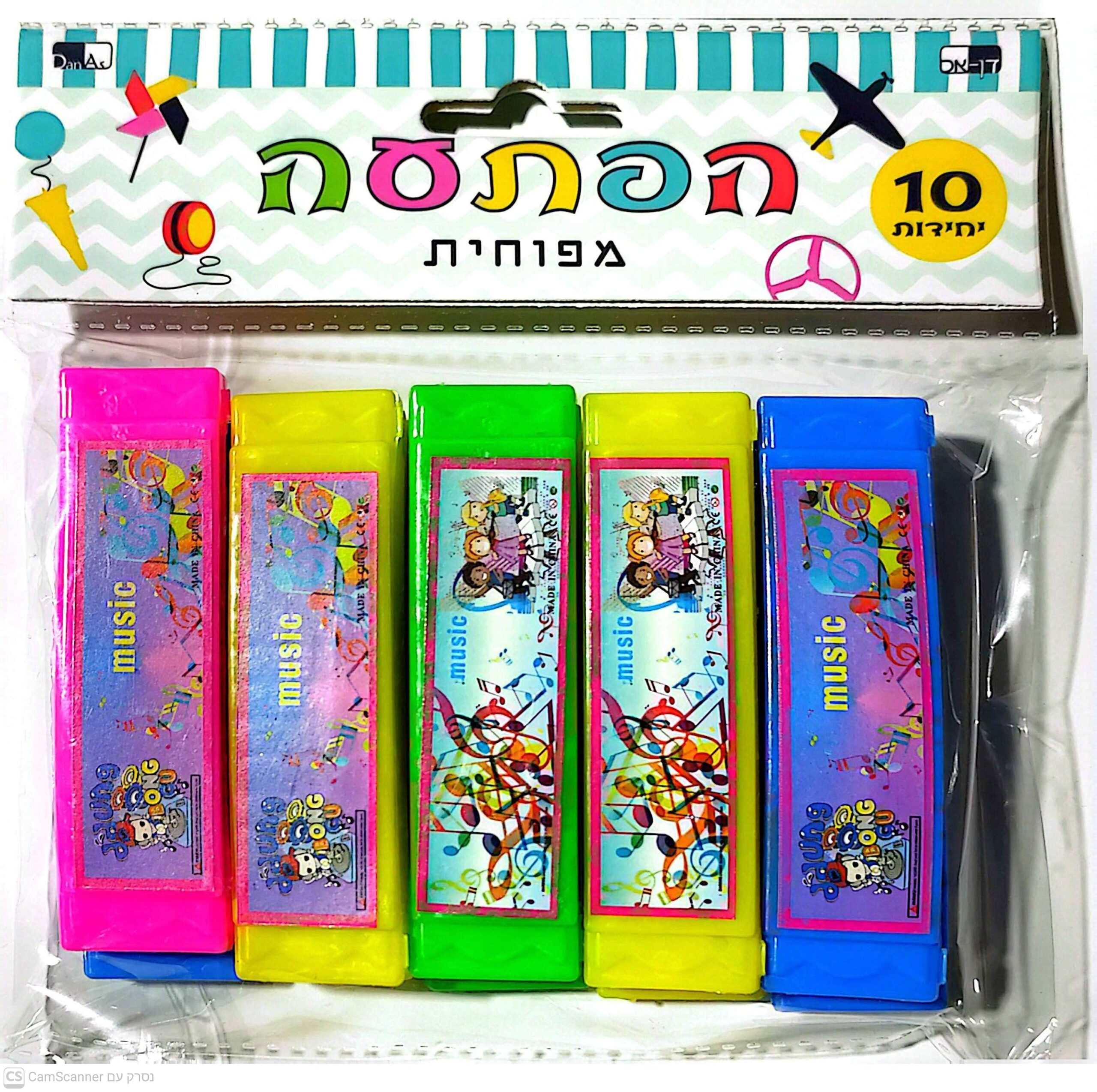מארז 10 שקיות הפתעה הכוללות מפוחית צבעונית – רעיון נהדר לימי הולדת וחגיגות.