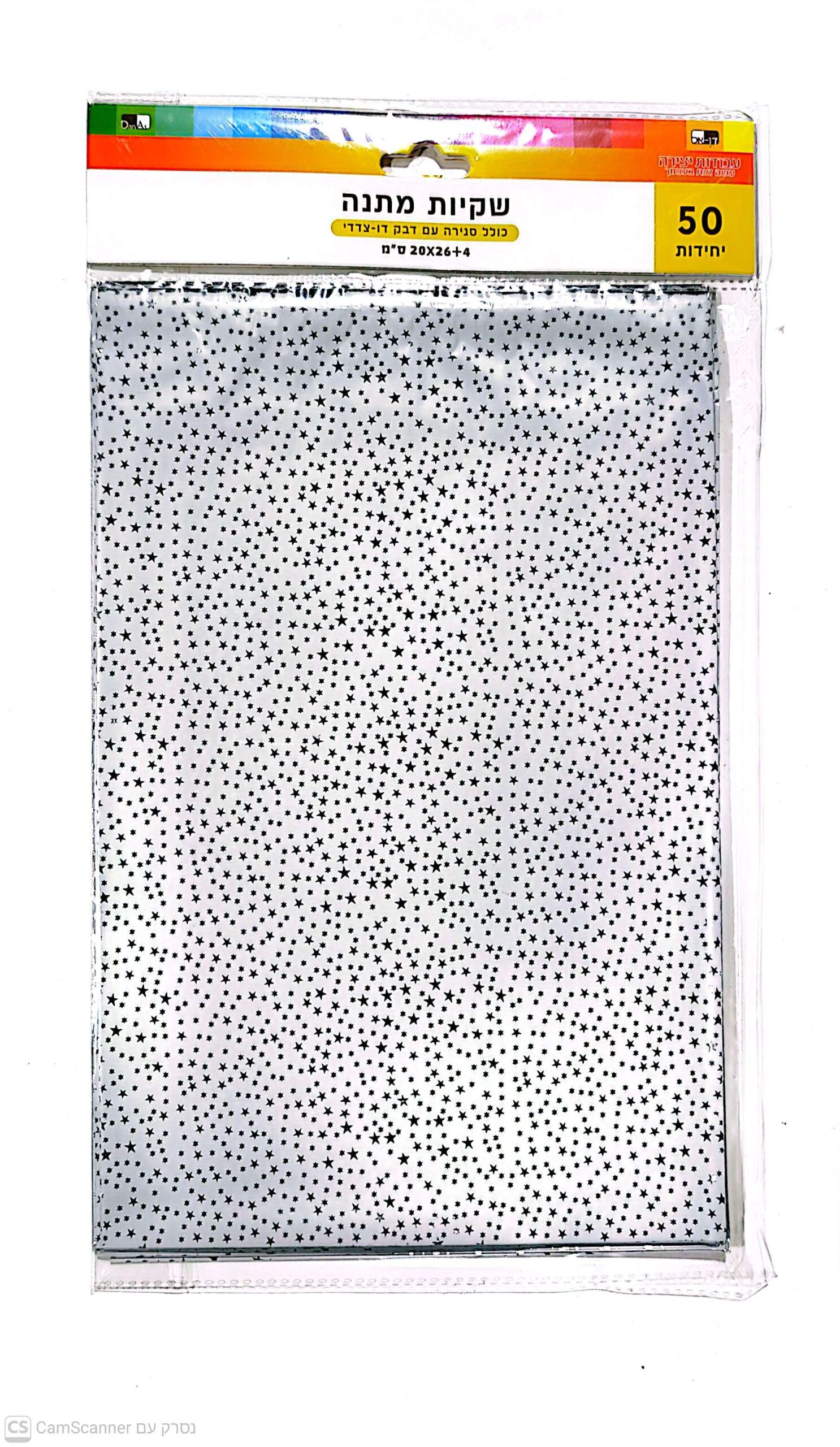 / שקית מתנה צלופן כוכבים כולל פס הדבקה 20/26 ס"מ – 50 יח'